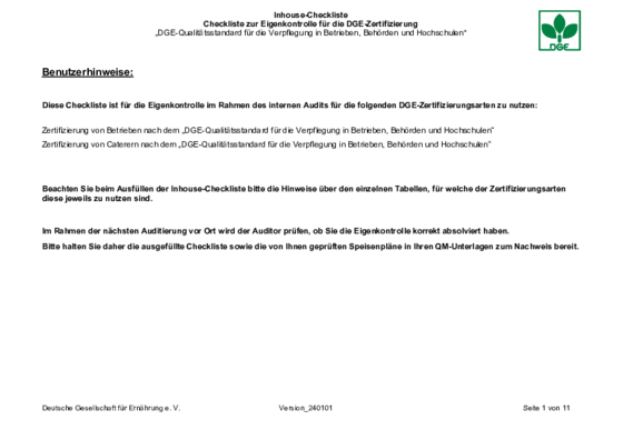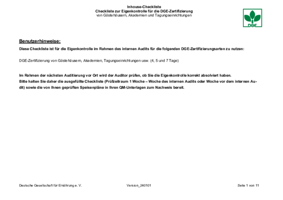 Inhouse-Checklisten DGE-Zertifizierung